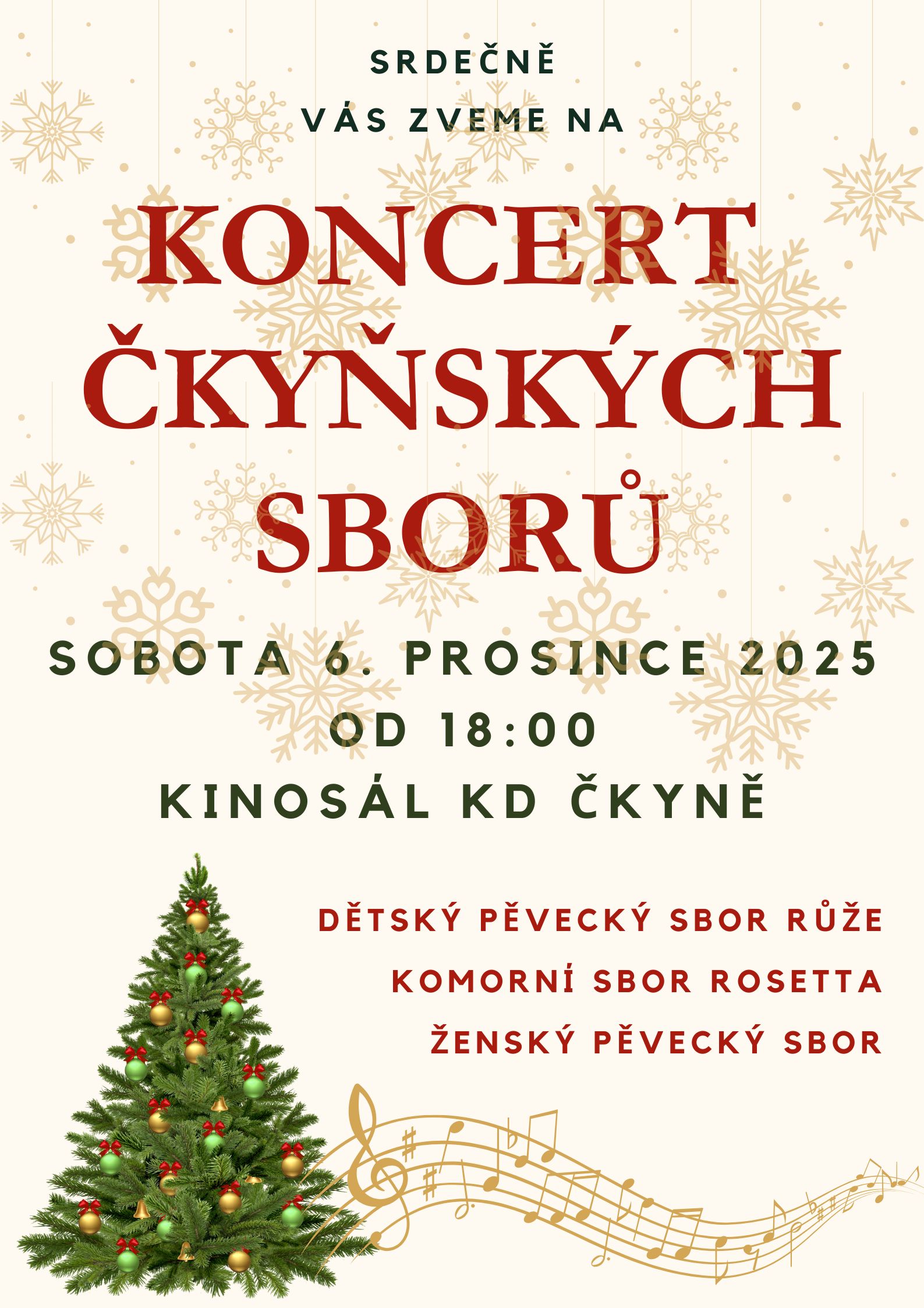 Adventní koncert pěveckých sborů Čkyně se koná v sobotu 6.12.2025 v Kulturním domě.