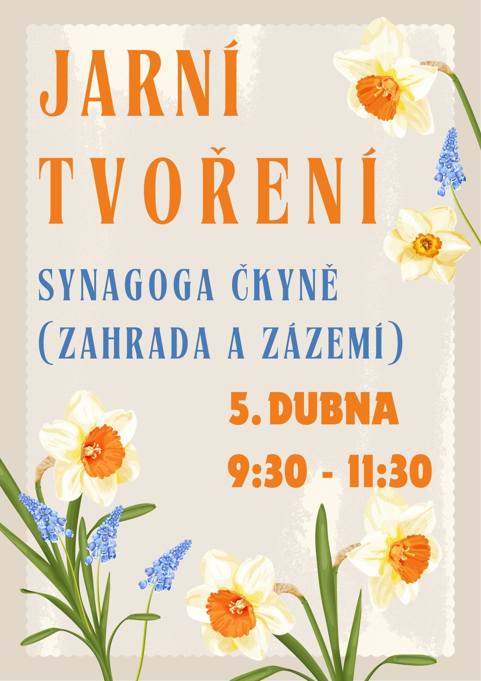 Synagoga ve Čkyni Vás zve na jarní tvoření o velikonoční neděli 05.dubna 2026 od 9:30 do 11:30, které se uskuteční v zahradě a v zázemí synagogy.