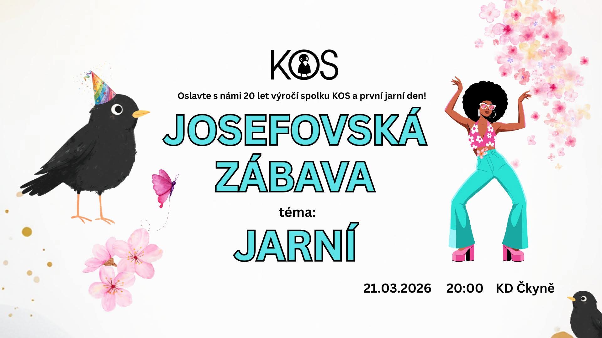 KOS Čkyně zve na Josefovskou zábavu dne 21.03.2026 v KD Čkyně. Josefovská zábava 2026 bude na téma JARNÍ. Všichni jsme zváni.